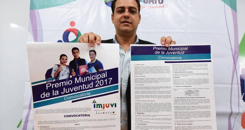 El Instituto de la Juventud Irapuatense convoca a organizaciones y sociedad en general al Premio de la Juventud 2017 en cinco distinciones: ingenio emprendedor, compromiso social, ciencia y tecnología, logro académico y expresiones artísticas y populares.