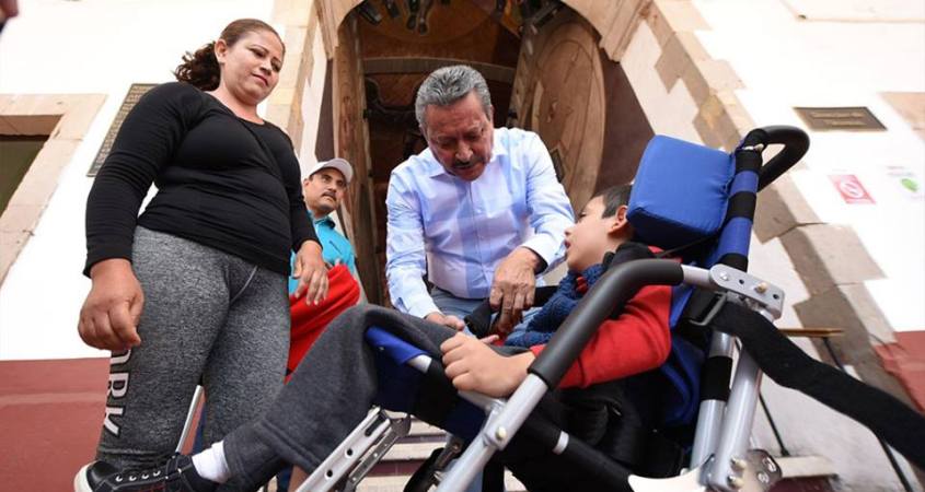 Enterado del problema familiar el Presidente Municipal Ricardo Ortiz Gutiérrez ordenó la compra de la silla-carriola que hoy le fue entregada a este joven matrimonio que tiene su domicilio en la Colonia 5 de diciembre.