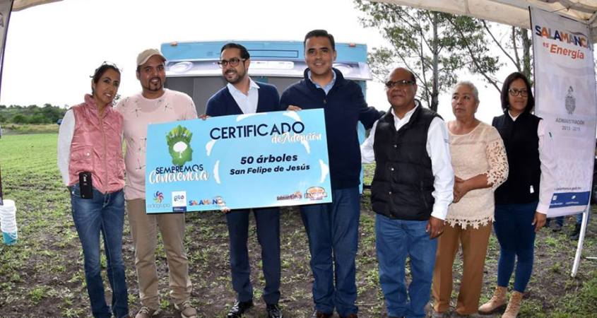 Salamanca, Gto. El presidente municipal de Salamanca Antonio Arredondo Muñoz en compañía de Marco Antonio Contreras Chávez presidente de Radio Grupo Contreras, autoridades estatales, municipales y habitantes de la comunidad de San Felipe de Jesús, realizó la reforestación del campo de futbol en acción al mejoramiento del medio ambiente, destacando a Radio Grupo Antonio Contreras como una empresa socialmente responsable y comprometida con el entorno.