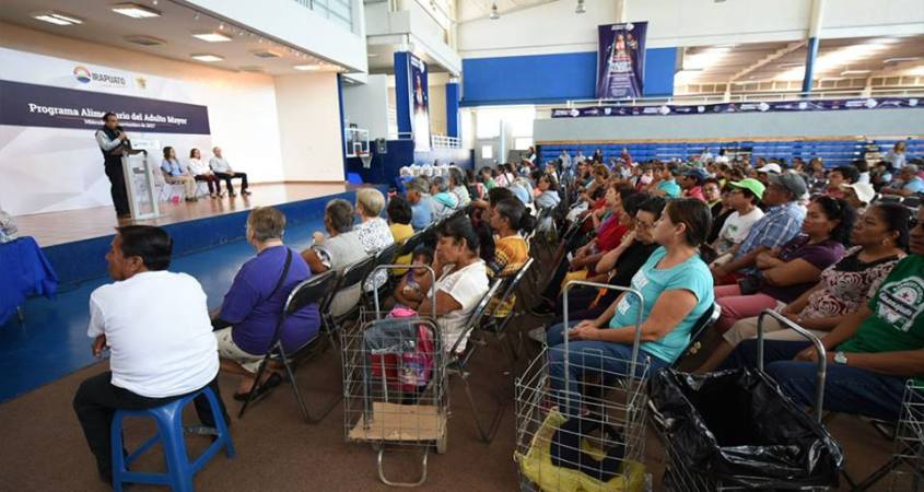 El programa Alimentario del Adulto Mayor permanecerá vigente en 2018, pues está blindado por la Contraloría Municipal. Hoy en las instalaciones del módulo COMUDAJ se llevó a cabo la ceremonia de entrega de 400 de las 1 mil 700 despensas que se harán llegar a los beneficiados en el curso de la presente semana.