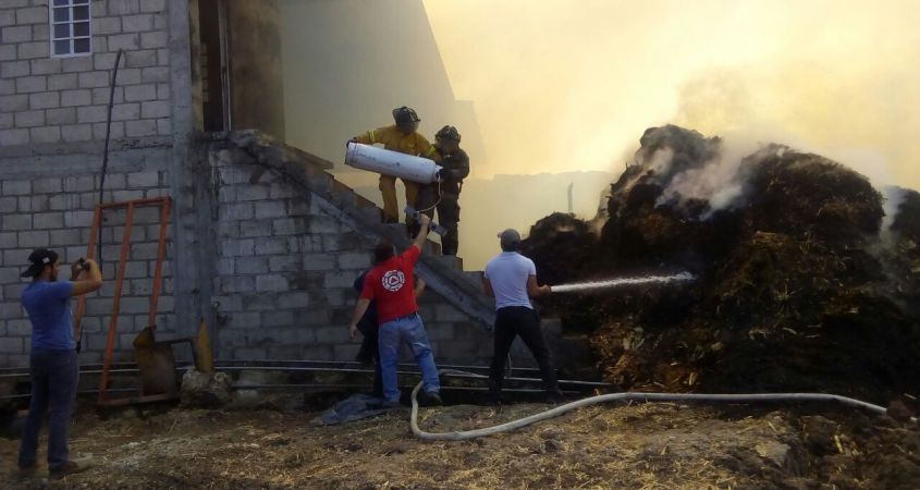 Héctor Hernández de la Mancha, titular de la dependencia, dio a conocer que se atendió de manera oportuna el llamado de emergencia, en donde señalaban el incendio de una bodega de aproximadamente 15 mil pacas.
