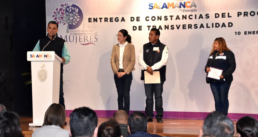 El presidente municipal de Salamanca Antonio Arredondo Muñoz hizo entrega de constancias a los funcionarios municipales que concluyeron satisfactoriamente el programa de capacitación “Transversalidad 2017” refrendado así el compromiso que la administración tiene por contar con servidores públicos preparados en temas de equidad de género y que den la atención necesaria a la ciudadanía de manera pronta y oportuna.