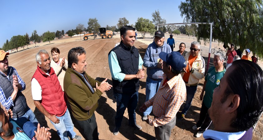 El alcalde acudió a los Campos Nuevos ubicados en la colonia El Olimpo, donde supervisó los trabajos, los cuales llevan avances significativos y darán grandes beneficios a los jugadores que practican este deporte.