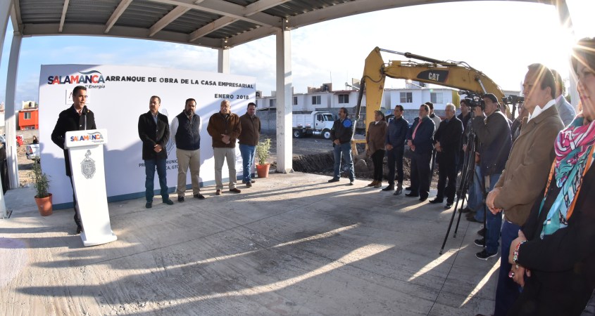 El presidente municipal de Salamanca, Antonio Arredondo Muñoz, en compañía de autoridades municipales y empresariales, dio el formal arranque a los trabajos de construcción de la Casa Empresarial de AEES, refrendando así el compromiso que tiene la Administración Municipal por generar apoyo al sector empresarial.