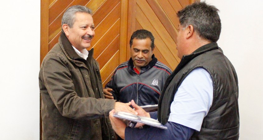 Los dirigentes de la organización Ligas Deportiva Unidas de Irapuato que encabezan Rogelio Villafaña (LIFA), Jaime Acosta Flores Veteranos Master), Joel Ortiz Lozano (Liga Comercial Sabatina) y Javier Ayala Martínez, (Veteranos Antonio Martínez Márquez) acudieron a Palacio Municipal para invitar al Alcalde Ricardo Ortiz Gutiérrez al partido final por el título de la Primera Fuerza que se disputará en el Estadio “Sergio León Chávez” el próximo 4 de Febrero a las 11:00 horas.