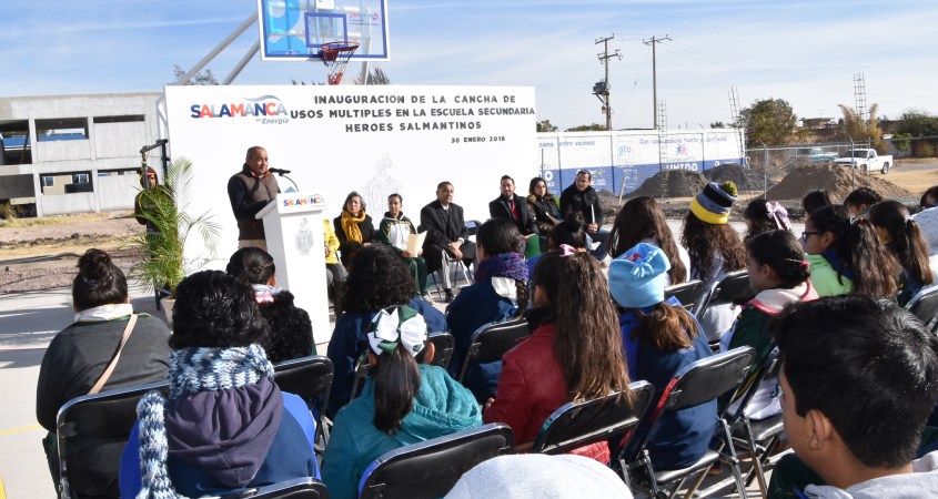 El Director General de Desarrollo Social y Humano, Gerardo Almanza Sánchez, y autoridades estatales, llevaron a cabo la inauguración de la cancha de usos múltiples de la secundaria “Héroes Salmantinos”, ubicada en la colonia El Edén, con la cual se refrenda el compromiso de brindar atención a la comunidad estudiantil.