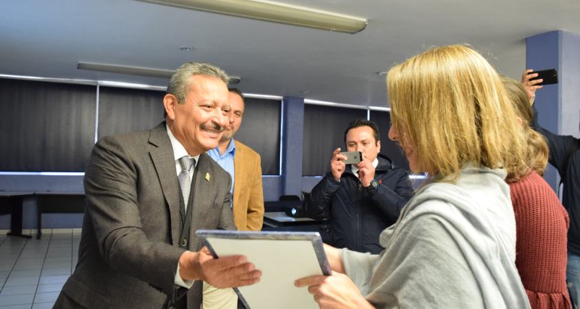 El Alcalde Ricardo Ortiz Gutiérrez encabeza los esfuerzos que en materia de seguridad realiza su Gobierno en favor de los irapuatenses, participa de manera directa en las mesas de trabajo con la Comisión Nacional de Seguridad (CNS); en éste segundo y último día de actividades entregó presentes a los visitantes que coadyuvan en la estrategia de seguridad en el Municipio de Irapuato, considerado como piloto en el Modelo Policial Basado en Evidencias.