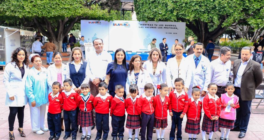 La presidenta de DIF Salamanca, Ana Luisa Aguinaco y en representación del presidente municipal de Salamanca, Antonio Arredondo, en compañía de autoridades municipales y del sector salud, dio inicio a la 1era Semana de Vacunación bajo el lema “Mientras tú los Quieres, las Vacunas los Protegen”.