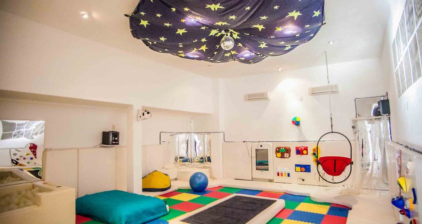 “Aquí los niños ejercitan los sentidos, músculos y habilidades mediante el juego. Esta sala está completamente equipada con colores, figuras y equipo necesario para estimular las áreas en las que el niño requiere mayor atención”.
