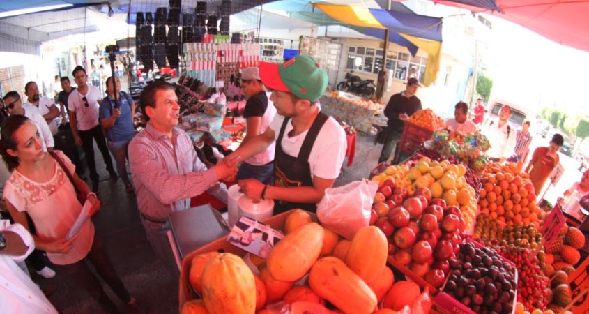 El candidato de la coalición MORENA, PT y PES, ofreció gestionar becas para los hijos de los comerciantes que trabajen dentro de la legalidad.
