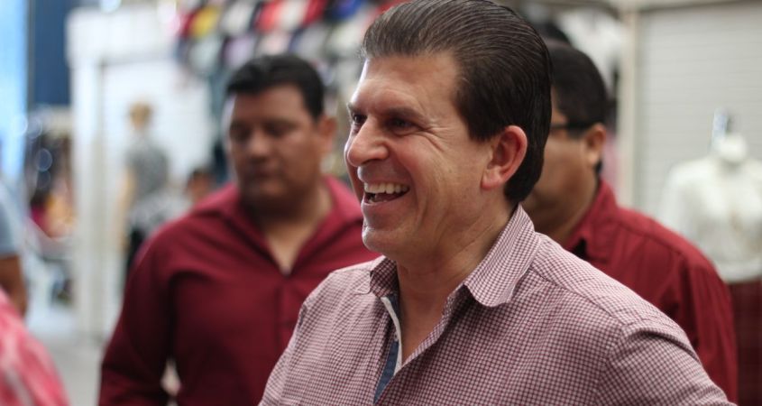 Ricardo Sheffield candidato al gobierno de Guanajuato por la coalición Juntos haremos historia, propone a locatarios de la plaza del comercio de Irapuato, trabajar en equipo junto con Andrés Manuel López Obrador para acabar con la corrupción y la desigualdad social que existe en el estado.