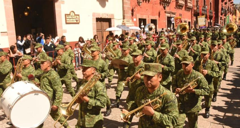Escuelas del municipio, asociaciones civiles y cuerpos de rescate, recorrieron durante dos horas las principales calles del Centro Histórico, como parte del desfile cívico militar en honor al 250 Aniversario del Natalicio del Generalísimo Ignacio Allende.