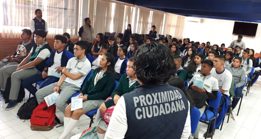 Con el objetivo de disminuir la incidencia delictiva entre estudiantes y que comprendan la diferencia entre falta administrativa y delito, la Dirección de Proximidad Ciudadana en conjunto con el Poder Judicial, llevan a cabo platicas con alumnos de secundaria bajo la temática de “Menores Infractores”.