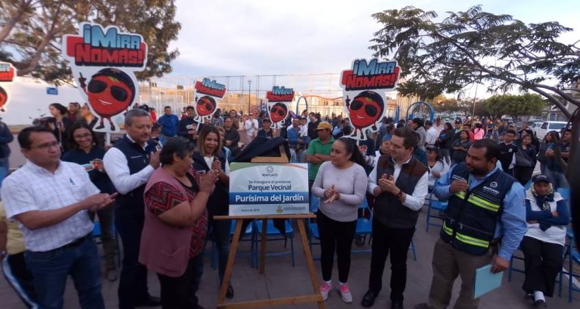 El director de Obras Públicas, Jonathan Muñoz Angulo, informó que el Parque Vecinal de Purísima del Jardín tuvo una inversión de 1.4 millones de pesos y beneficia a más de 7 mil personas de la colonia y zonas cercanas; entre los alcances de la obra destaca la rehabilitación de la trotapista y la cancha de usos múltiples, además de la colocación de 3 mesas de ajedrez.