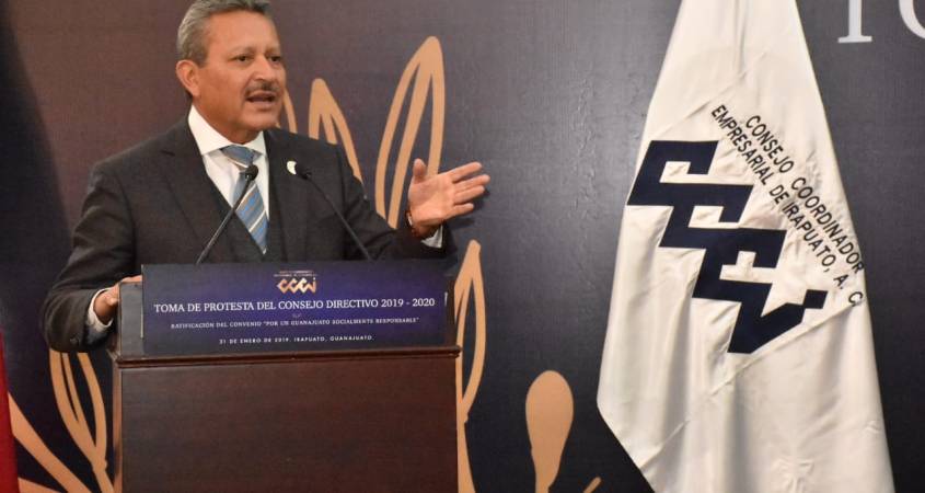 Durante la toma de protesta de Rafael Lamadrid Berrueta, como presidente del Consejo Directivo del Consejo Coordinador Empresarial de Irapuato (CCEI) 2019-2020 y la ratificación del convenio de Empresas Socialmente Responsables, el Alcalde aseguró que el Municipio continuará contratando proveedores que cuenten con este distintivo.