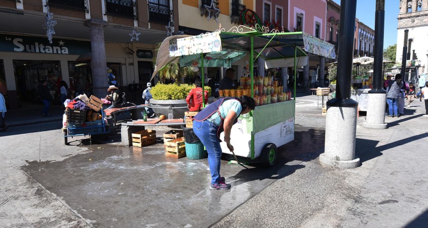 Luis Quetzalcóatl García Cisneros, titular del área, resaltó que todos los días se realiza la limpieza de los espacios que ocupan los carritos del primer cuadro de la ciudad, con el fin de mantener su imagen de forma higiénica y que no obstruyan más espacio del que compete para su funcionamiento.