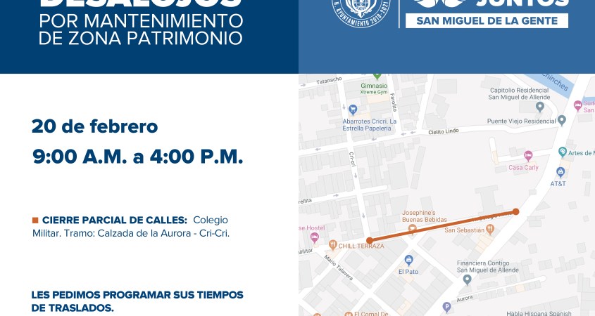 En congruencia con el compromiso del Presidente Municipal Luis Alberto Villarreal García, en mejorar la imagen urbana del Centro Histórico, continúan las acciones del programa de “Mantenimiento y Conservación de Calles”, por lo que se da parte a la ciudadanía sobre los cierres que habrá en la semana del 18 al 22 de febrero.