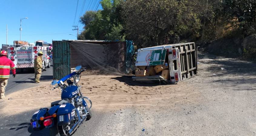 A la altura del “Mirador Caracol”, un camión de volteo se impactó con dos vehículos al quedar sin frenos; elementos de la Secretaría de Seguridad Pública Municipal acudieron al lugar del accidente, donde reportan tres heridos que fueron trasladados al Hospital General y un deceso.El camión de volteo, circulaba por el libramiento “José Manuel Zavala Zavala” en dirección hacia la glorieta “El Pípila”, al quedarse sin frenos, volcó e impacto con dos vehículos, un camión repartidor de alimentos, marca Nissan, y otra marca Toyota, deteniéndose sobre la terracería del carril derecho del libramiento, a la altura del “Mirador Caracol”.