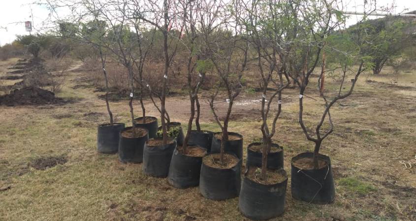 Estos árboles nuevos tienen los cuidados adecuados, con riego y abono para su especie, la cual en su mayoría es mezquite.