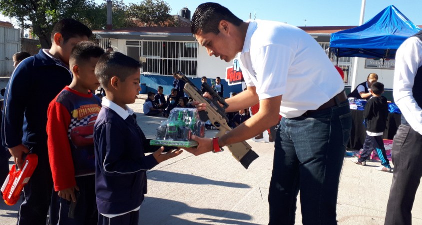 Personal de la dependencia realizó el primer intercambio de 2019, en la escuela primaria Solidaridad, de la colonia La Lupita, donde lograron recolectar 274 juguetes que simulan pistolas, armas largas y cuchillos, entre otros.