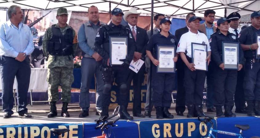 En una ceremonia especial elementos de seguridad pública municipal fueron condecorados y reconocidos por su labor por parte de las autoridades municipales que encabeza Salomón Carmona Ayala quien también hizo entrega de nuevos uniformes.