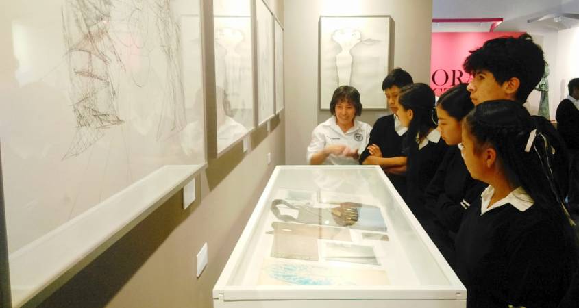 Fueron 24 los estudiantes que visitaron este fin de semana la exposición del “Recóndito Mundo de Leonora Carrington” por invitación de la dirección de Cultura y Tradiciones, y que se presenta en el patio del antiguo Palacio Municipal.