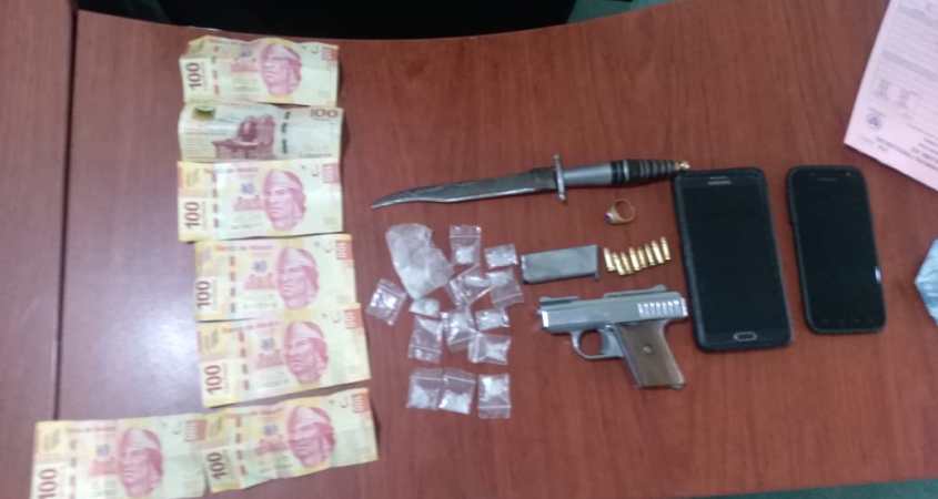 Elementos de Policía de Proximidad detectaron un automóvil al que marcaron el alto al transitar sobre la glorieta de Ventanas, al inspeccionarlos tenían droga conocida como Cristal y un arma de fuego.