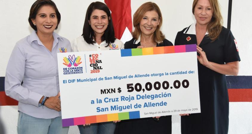 En las instalaciones de la Cruz Roja de San Miguel de Allende el Sistema DIF Municipal presidido por Susana Chauvet hizo entrega de un cheque con valor de $50,000.00, cantidad recaudada después de una rifa a beneficio de la Colecta Nacional 2019.