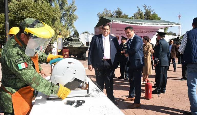 Cabe señalar que dicha ceremonia y destrucción es de acuerdo a la Ley Federal de Armas de Fuego y Explosivos, por ello se destruyeron armas que fueron decomisadas en distintos operativos, siendo un total de 153 armas largas; 579 armas cortas; 482 cargadores; 12,812 cartuchos de diferentes calibres.