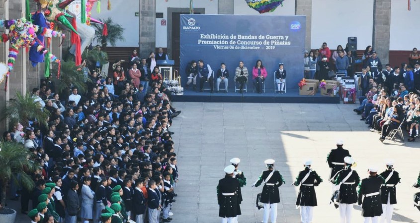 Con la finalidad de mantener los valores cívicos y arraigar las tradiciones que se tienen como mexicanos, la Dirección de Educación, realizó la exhibición de Bandas de Guerra y Premiación del Concurso de Piñatas 2019, en el patio de Presidencia Municipal.