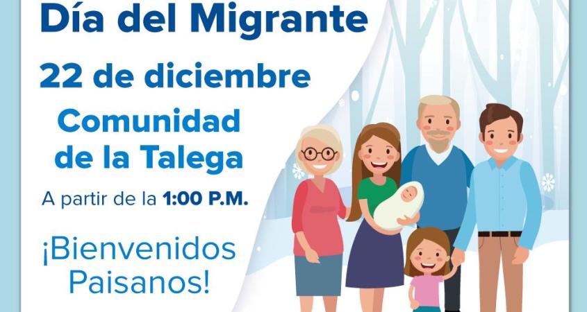 Como cada año, este domingo 22 de diciembre, el Gobierno Municipal festejará el “Día del Migrante” en la comunidad “La Talega”.