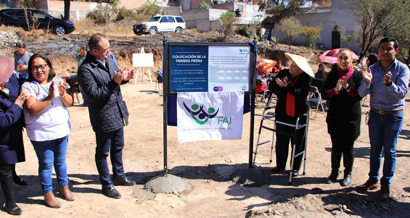 El Presidente Municipal Luis Alberto Villarreal en compañía de Elizabeth Cou de Beteta miembro fundador de FAI colocaron la primera piedra del que será el Centro Comunitario Ecológico para la Capacitación Ambiental y de Desarrollo Humano en San Miguel de Allende (CECECADE).