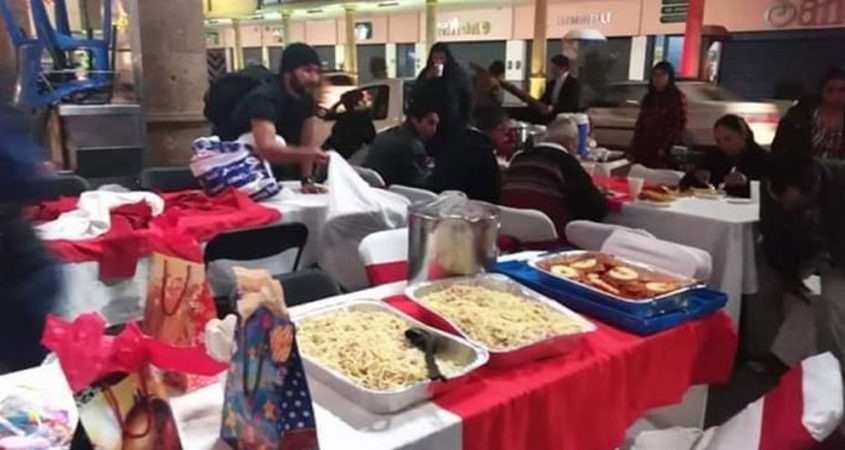 La noche del 24 de diciembre, integrantes del grupo ‘Dar es recibir’, montaron sillas, mesas, manteles, sirvieron alimentos y bebidas para quienes no tenían posibilidad de disfrutar la fecha.
