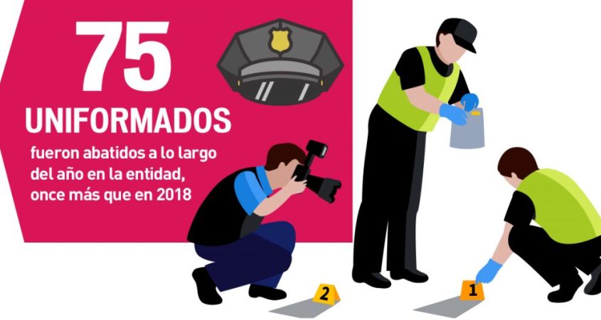 La intensa batalla entre grupos delictivos en la entidad el año pasado alcanzó el mayor saldo de policías asesinados en la historia reciente del estado, con un total de 75 oficiales caídos, doce más que el récord que había impuesto el año anterior, de acuerdo con los casos publicados por correo.