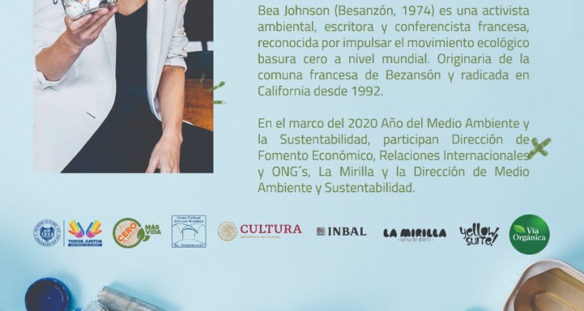 En el marco del año del Medio Ambiente y la Sustentabilidad, el Gobierno Municipal ofrecerá la conferencia magistral “Zero Waste Home”, impartida por Bea Johnson.
