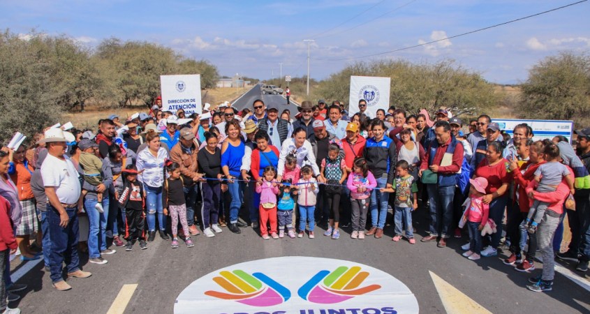 Ella en compañía del subsecretario de la Secretaría de Desarrollo Agroalimentario y Rural (SDAyR), Roberto Castañeda Tejada, inauguraron la tercera etapa de la construcción del camino rural ubicado en Jesús María La Petaca a Pozo de Balderas, conectando a más de 2 mil 600 vehículos que transitan por la zona, realizando una inversión junto con Gobierno del Estado por 9 millones 986 mil pesos.
