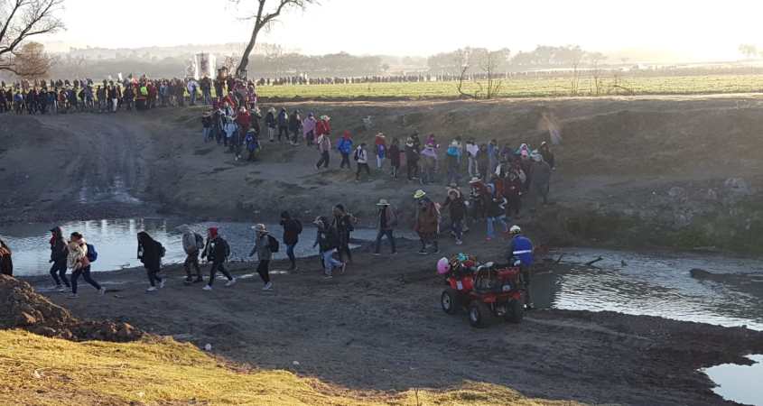 Los peregrinos toman el camino hacia rancho la Esperanza y San Rafael para salir rumbo a la carretera de Cruz del Palmar y de ahí caminar hasta el Xoconostle, en donde alrededor de las 3 o 4 de la tarde se entregará a la Unidad de Protección Civil de Dolores Hidalgo.