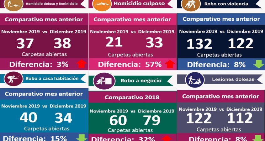 34 carpetas de investigación abiertas en diciembre 2019
