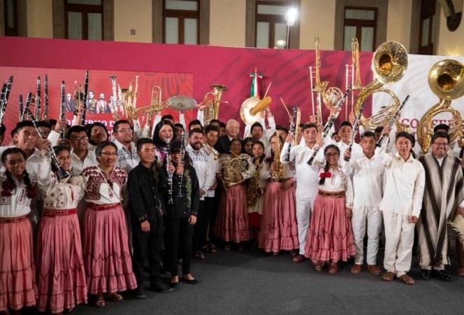 Este lunes, desde Palacio Nacional el Gobierno de la República rindió homenaje a la cultura musical de Oaxaca y cumplió lo prometido por el presidente de México, Andrés Manuel López Obrador, hace dos meses cuando ofreció entregar instrumentos musicales a niños y jóvenes de escasos recursos con talento musical.