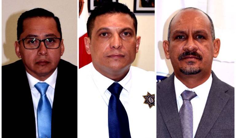 Francisco Frías Méndez, Gerardo Manuel Hernández Chávez y Roberto Pérez Castro, fueron presentados este lunes por el secretario de Seguridad Ciudadana, Miguel Ángel Simental, como los nuevos directores de la Dirección de Tránsito Municipal, Instituto de Formación Policial (INFOPOL) y en el área de Comando, control, comunicaciones y cómputo (C4), respectivamente.