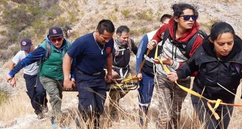 Patricia Sánchez Stivenson, directora del DIF municipal fue rescatada por elementos de Bomberos Voluntarios Guanajuato luego de que sufrió una lesión en una de sus piernas y le fue imposible caminar cuando se encontraba en la zona de acantilados en el cerro de la Bufa.
