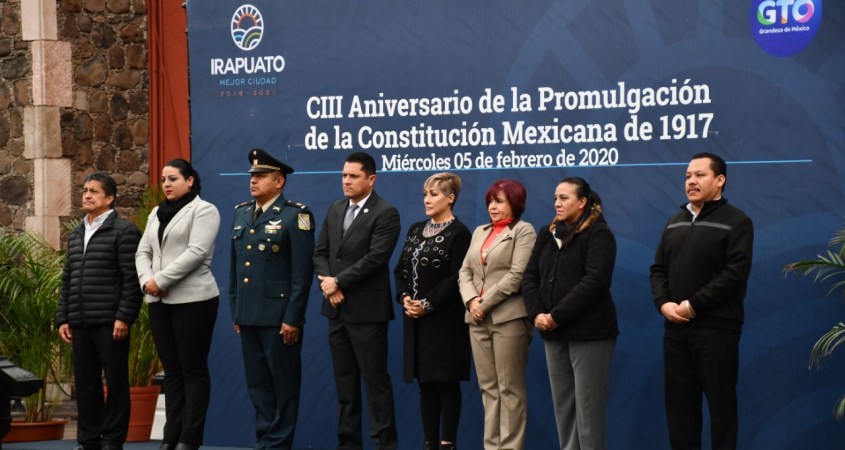 Para celebrar el 103 aniversario de la promulgación de la Constitución Mexicana de 1917, integrantes del Ayuntamiento, rindieron honores a la bandera en la plaza de Los Fundadores.