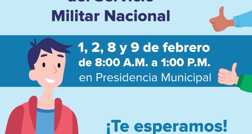 Lo anterior correspondiente a la clase 2001 y remisos, siendo únicamente los días 8 y 9 del mes de febrero de este año, en un horario de 8 de la mañana a 1 de la tarde, que se podrán recibir los documentos en las instalaciones que ocupa la oficina del Servicio Militar Nacional, ubicada en la parte baja del Edificio