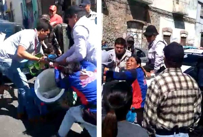 En forma agresiva, los servidores públicos de Vía Pública llegaron en una camioneta, rodearon a la señora y le quitaron el producto.