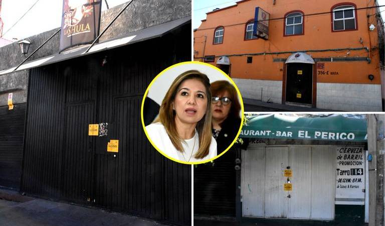Los establecimientos que tienen licencia de restaurante bar y que fueron clausurados son: bar El Peregrino ubicado en la calle Rosas Moreno, El Perico Azul el cual está en Antonio Plaza, además de un Modelorama de la avenida Irrigación, un expendido de bebidas alcohólicas en la colonia Los Pinos, además del bar La Shula.