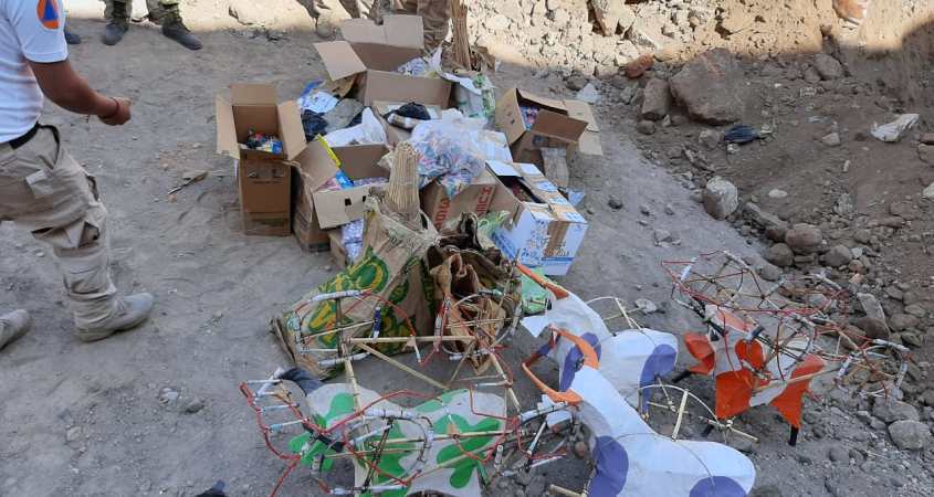Un total de 200 kilogramos de pirotecnia fueron destruidas por parte de la Dirección de Protección Civil y el Cuerpo de Bomberos con la supervisión de la Secretaría de la Defensa Nacional (SEDENA).