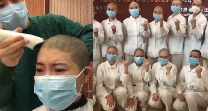 Médicos y enfermeras han tenido que rasurar sus cabezas antes de llegar a Wuhan para poder atender a infectados por el covid-19.