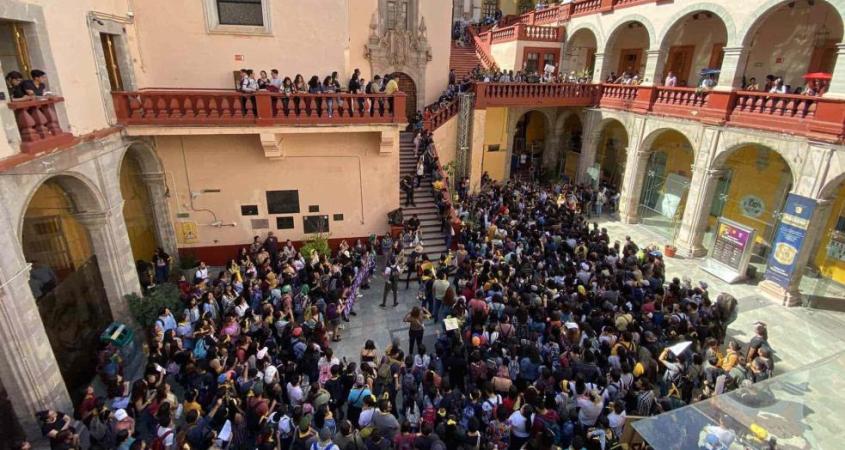 Alumnado de la Universidad de Guanajuato tomó las calles de la capital para exigir la disolución de las comisiones creadas por las autoridades académicas para dar seguimiento a los casos de violencia de género, en las cuales no fueron incluidos.