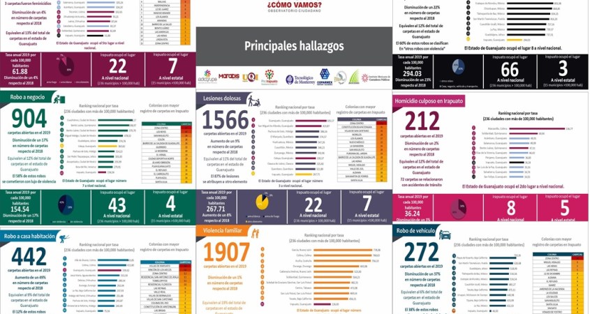 En el caso de Irapuato se registró una tasa de 264.03 robos con violencia por cada 100,000 habitantes, siendo una tasa por encima de la media estatal, pero mostrando disminución en cuanto a la tasa del 2018 en un 23%.