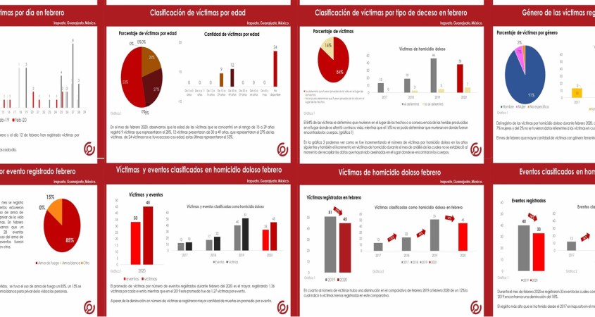 El reporte mensual de víctimas por homicidio doloso acontecidos en el municipio de Irapuato, Guanajuato.